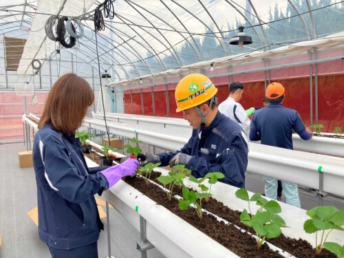 2025年9月、クリコンのビニールハウスで、いちごの苗を植えました🍓